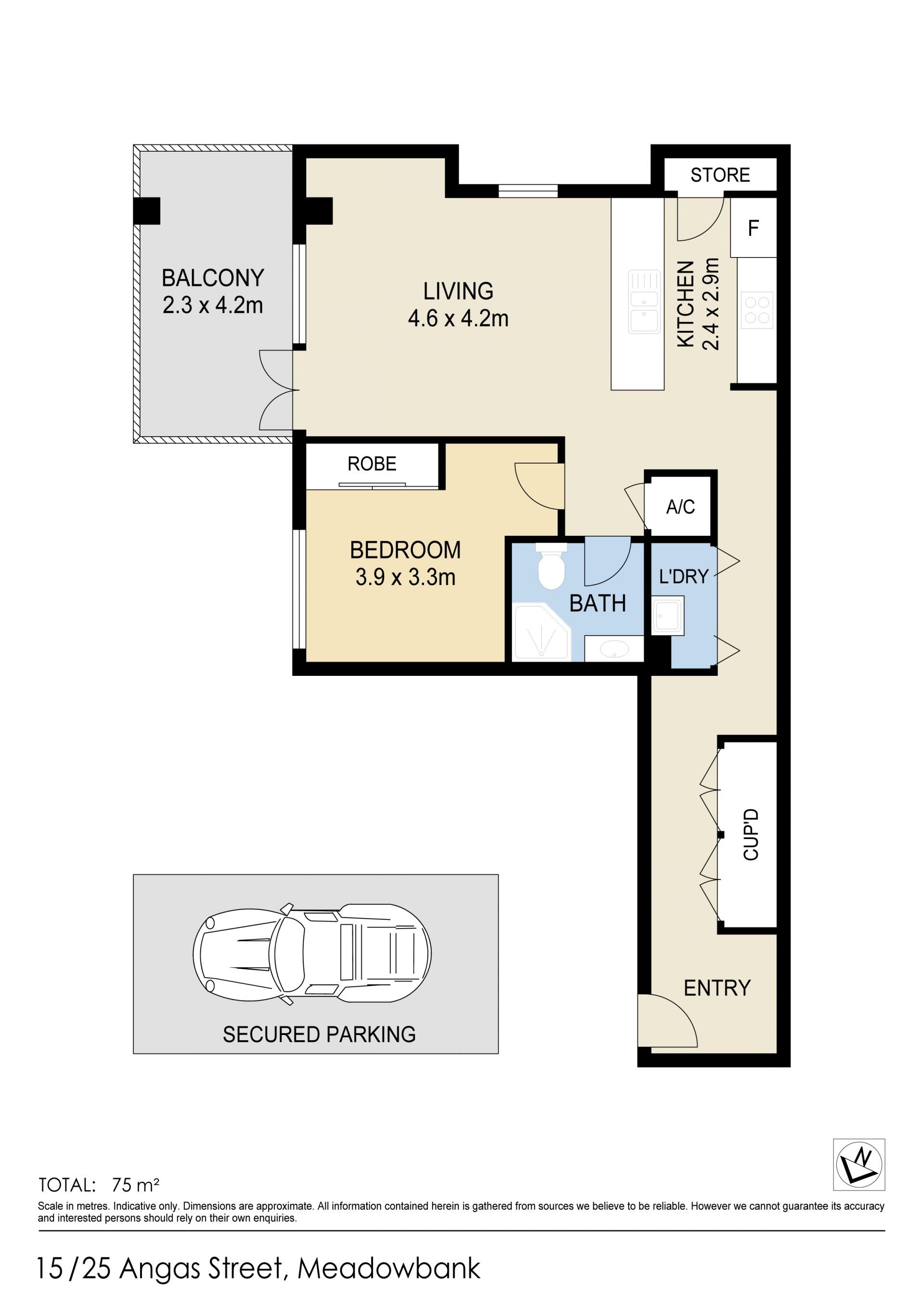This modern & spacious one bedroom apartment is well positioned and features include:
